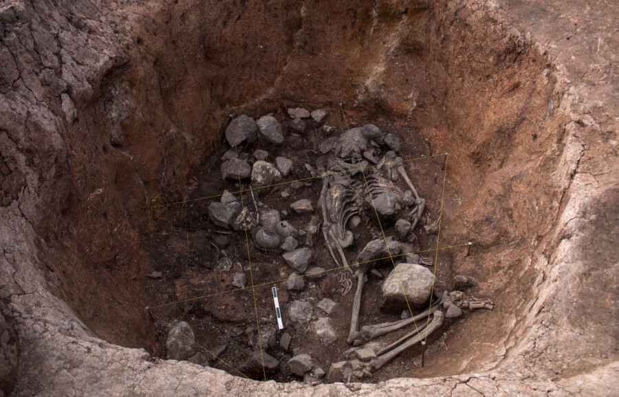 Водачот на проектот Јуџи Секи рече дека големината на гробницата, со дијаметар од речиси два метри и длабока еден метар, е „многу необична“, како и положбата на телото, од кое половината е испружена, нозете прекрстени и со лицето надолу.