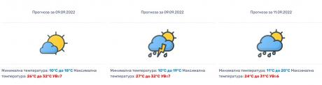 Во сабота кон крајот на денот и во недела ќе има локална појава на нестабилна облачност со краткотраен пороен дожд и грмежи.