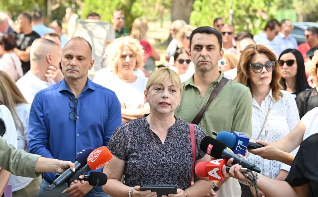 Од овде, пред зградата на надлежното Министерство порачуваме: Нема оправдувања! Зголемете ги платите! Наставниците тоа го заслужуваат!“, рече Ангеловска.