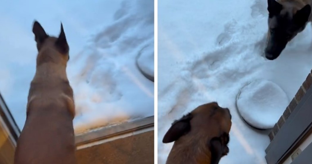 @maligatormom Puppy sees snow for the first time #snowday #puppy #malinois #longervideos ♬ original sound – Maligatormom