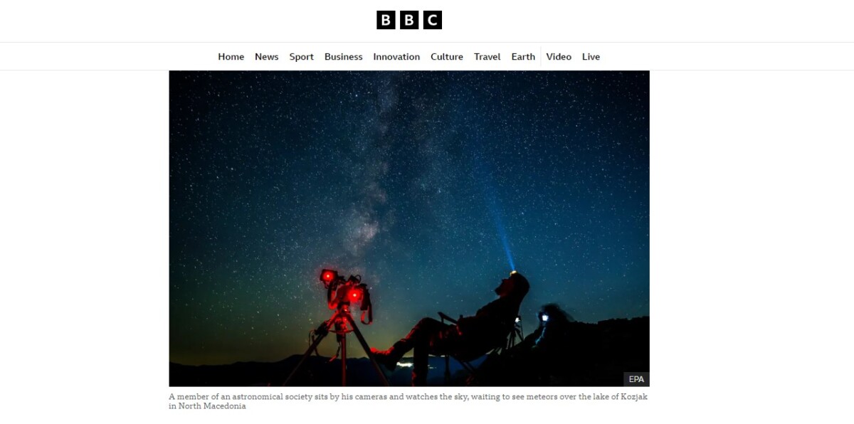 Познатиот Би-Би-Си објави фотографија од Македонија за време на метеорскиот дожд. Фотографијата е над езерото Козјак.