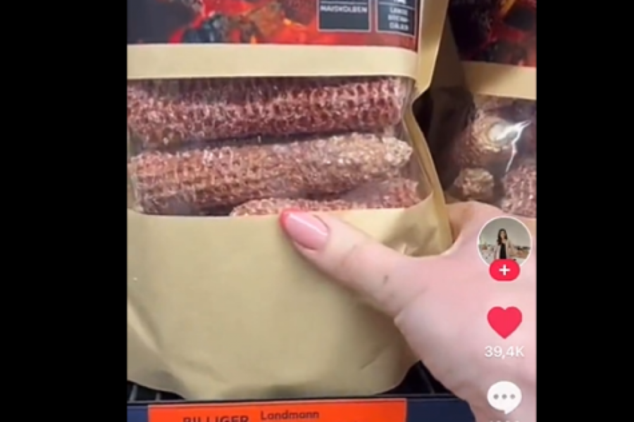 На социјалните мрежи се споделува видео кое предизвика неверување кај многумина. На видеото се гледаат суви кора од пченка кои во Германија се продаваат за дури 9,99 евра или за 7,99 кога се во продажба. Во пакувањето има околу 15 парчиња, пренесува Пословни дневник.