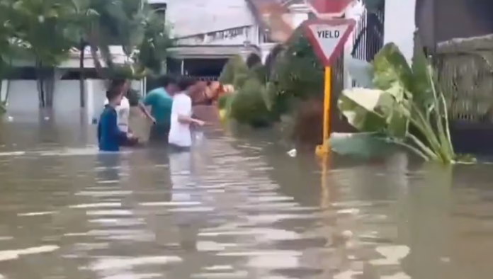 Тајфунот предизвика ненадејни поплави кои ги заробија жителите на покривите и ги потопија автомобилите во неколку населби, а исто така расели и десетици илјади луѓе, објави АП.