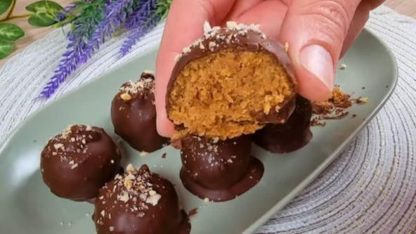 Растопете ја чоколадата и во неа расукајте ја секоја топка. Се редат на плех, па се ставаат во фрижидер еден час да се стегне чоколадото.