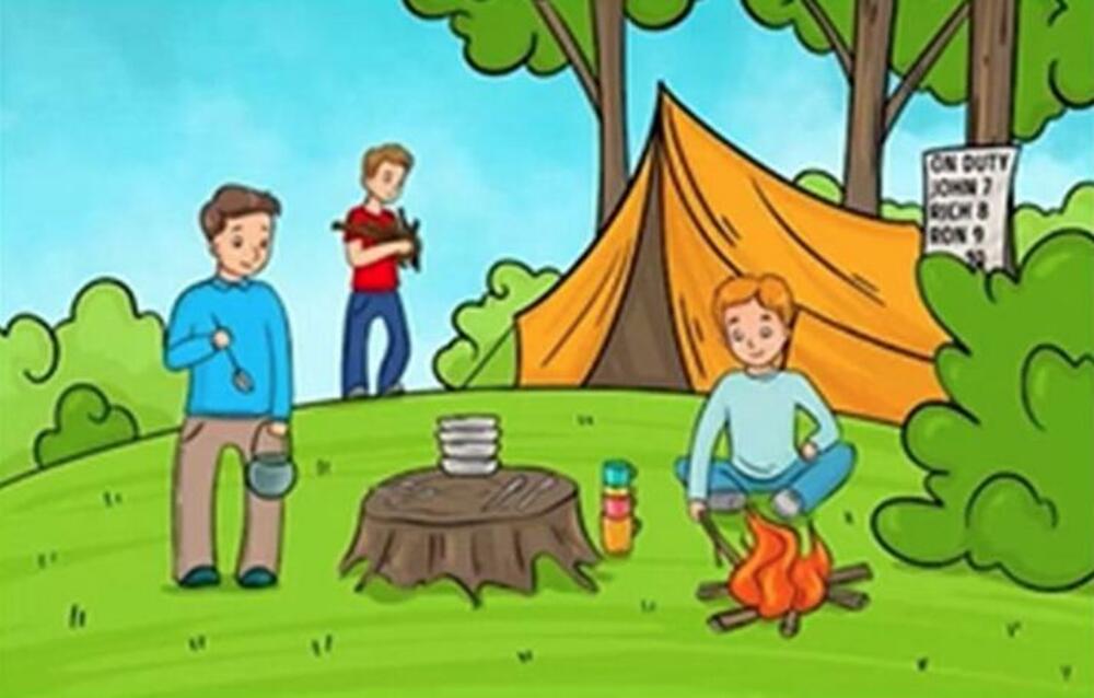 Имено, на илустрацијата се гледаат тројца мажи кои седат во шумата пред шатор. Но, тие ја понесоа и компанијата со себе, а ваше е да дознаете колку ги има вкупно.