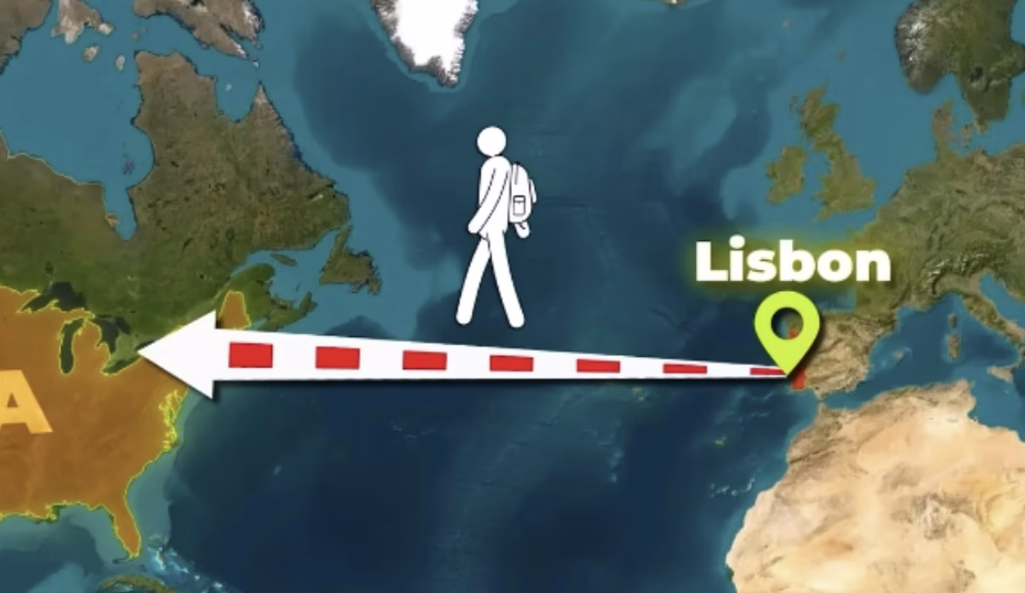 Гледајќи ја мапата, гледаме дека Лисабон, т.е. Португалија, и Соединетите Американски Држави се одделени од Атлантскиот Океан. А пешачењето од Лисабон до Њујорк звучи невозможно.