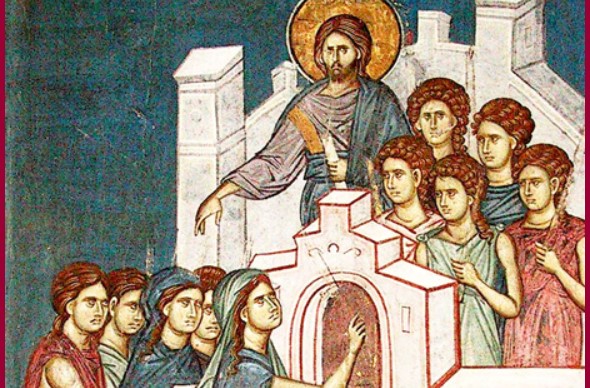 А среде нивниот сон, на полноќ, настана викотница, се отворија вратите, и оние, коишто се беа снабдиле со изобилство масло – влегоа со женикот, а лудите, коишто не зедоа доволно масло, почнаа да бараат, тогаш кога се разбудија. Иако сакаа, мудрите не можеа да им дадат на неразумните, бидејќи беше време за самото влегување (во брачните одаи), и затоа им одговорија: да не би да не ни стигне и нам и вам, подобро одете кај продавачите, т.е. кај сиромашните и купете. И, покрај сè, лудите девојки, коишто беа дошле без светлина, извикуваат удирајќи по вратата: Господару, Господару! Отвори ни. Но, Самиот Господ го изговара оној страшен одговор: Одете си, ви велам, не ве познавам. Како ќе го видите женикот, кога го немате виното на милоста?