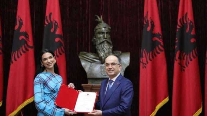 Албанскиот претседател Бајрам Бегај и го врачи уверението за албанско државјанство на познатата пејачка Дуа Липа и порача дека таа е гордост на државата.