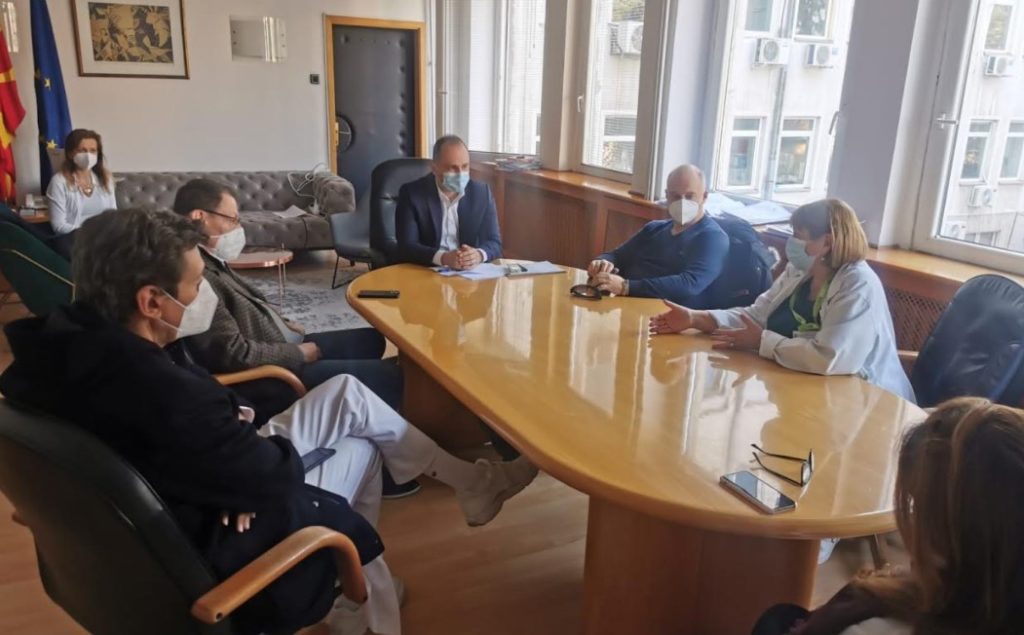 Министерот за здравство д-р Венко Филипче утрово се сретна со директорите на ковид центрите од комплексот клиники Мајка Тереза во Скопје за да се разгледа состојбата со пополнетоста на капацитетите на клиниките и динаминиката на отворање на нови оддeленија за ковид пациенти. Во моментов Интерните клиники располагаат со околу 190 болнички кревети со довод на кислород. Иако пополнетоста на капацитетите е висока, постојано се прават исписи на пациенти и слободни места има.