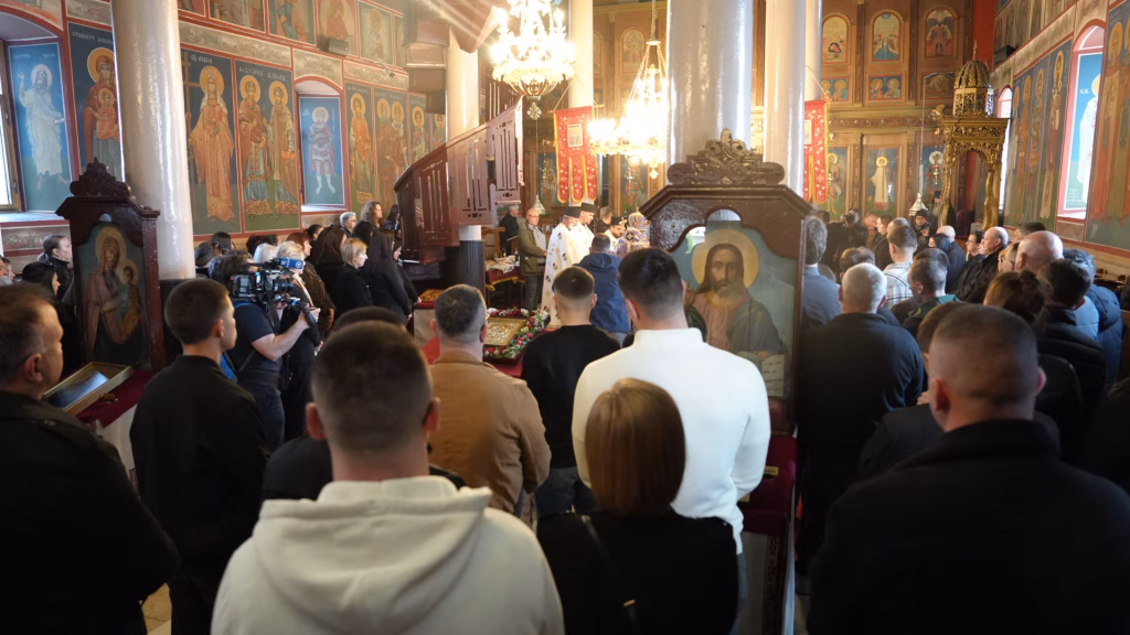 Литургијата помина во тивка и достоинствена атмосфера, со присуство на роднини, пријатели и граѓани кои со молитва и свеќи го одбележаа споменот на трагично настраданите.