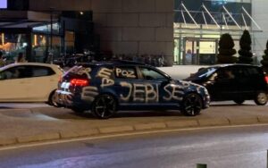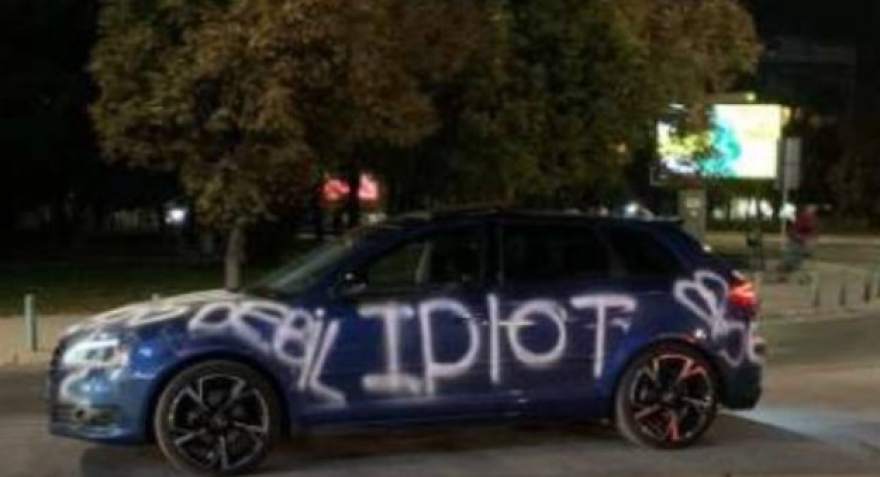 Синоќа беше невозможно да не се забележи автомобил паркиран пред трговскиот центар „Сити мол“, на кој беа испишани зборови како „дебил“, „идиот“ и „cheater“.