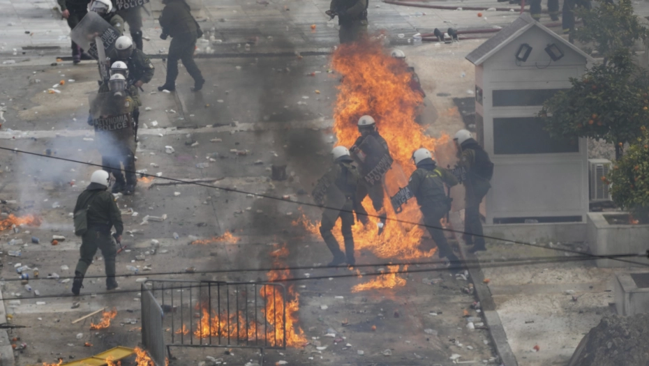 Грчката полиција употреби солзавец кон демонстрантите кои фрлаа бензински бомби, откако протестот за одбележување на годишнината од најтешката железничка несреќа во земјата стана насилен.