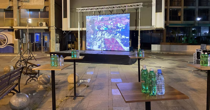 Пред седиштето на ВМРО-ДПМНЕ, познато како Белата палата, вечерва се поставува бина.
