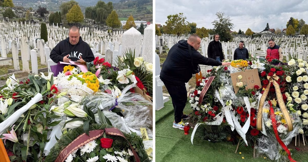Синот на Халид Бешлиќ, Дино, заедно со своите најблиски соработници го посети гробот на својот татко ден по погребот.