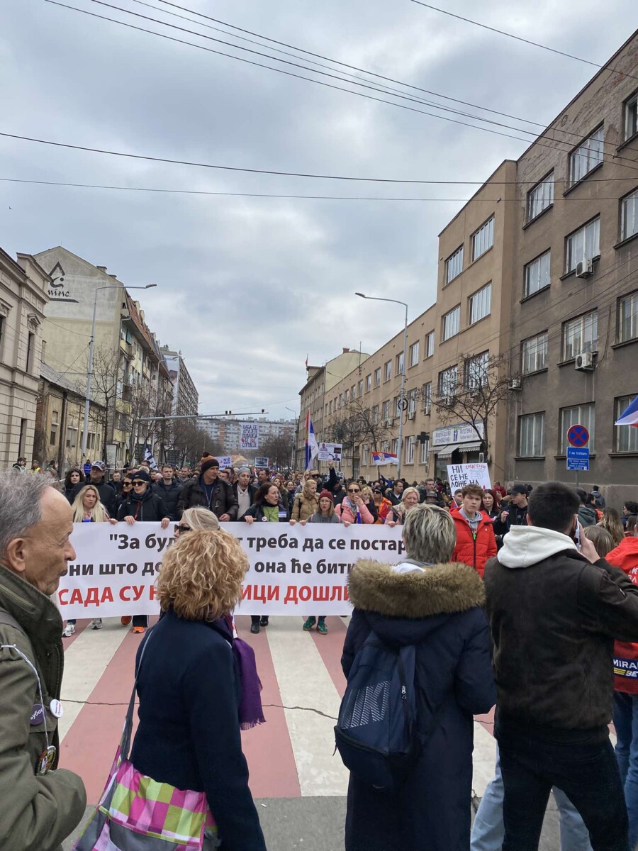 Собирот на четири локации траеше до 11 часот, а учесниците на протестот потоа тргнаа на протестна прошетка до плоштадот Крал Милан, каде со 15-минутно молчење им оддадоа почит на жртвите од уривањето на настрешницата.