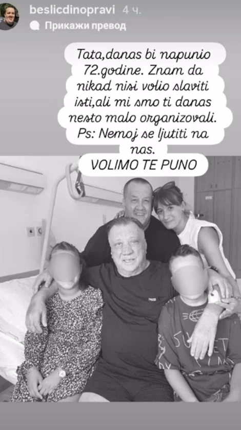 „Тато, денес би наполнил 72 години. Знам дека никогаш не сакаше да го славиш роденденот, но ние денес ти организиравме нешто мало. П.С. Немој да се лутиш на нас. Те сакаме.“ – напиша Дино.