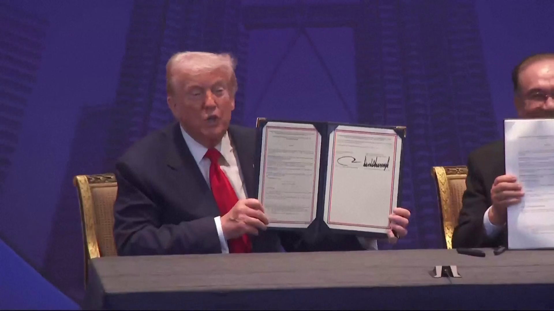 Американскиот претседател го гледаше како камбоџанскиот премиер Хун Манет и тајландскиот премиер Анутин Чарнвиракул потпишаа проширен договор за прекин на огнот на годишниот самит на Асоцијацијата на земјите од Југоисточна Азија (АСЕАН) во Малезија, кратко по пристигнувањето на Трамп.