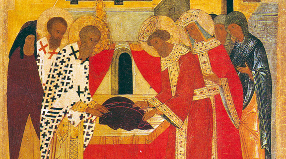 Ризата беше свечено пренесена и положена во црквата Влахерна. (Оваа црква ја соѕидаа царот Маркијан и царицата Пулхерија на брегот на еден залив, наречен Влахернски, според името на некој скитски војвода Влахерн, којшто на ова место беше убиен). Овој празник е востановен во спомен на полагањето на ризата на Пресвета Богородица во Влахернската црква.