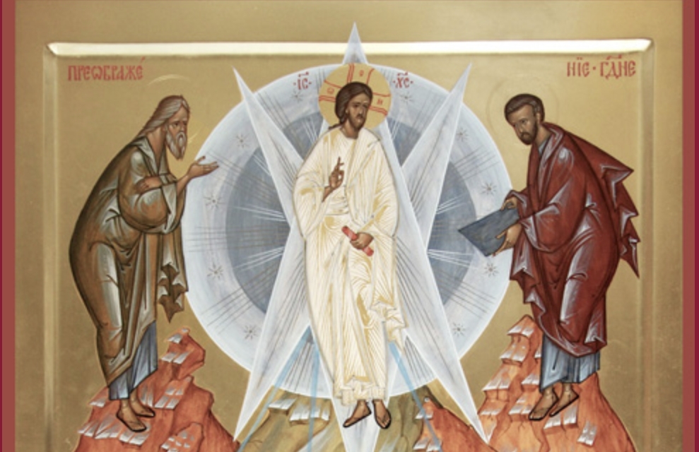 И заблеска лицето Негово како сонце, а облеката Му побеле како снег. И се појавија покрај Него Мојсеј и Илија, големите старозаветни Пророци. И видоа учениците и се восхитија. И Петар рече: „Господи, добро ни е да бидеме овде; ако сакаш да направиме три сеници: една за Тебе, за Мојсеј една, а една за Илија“. Но, додека Петар уште говореше, се оддалечија Мојсеј и Илија и сјаен облак ги опфати Господ и учениците и дојде глас од небото: