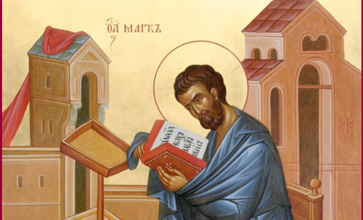 Му беше сопатник и помошник на апостолот Петар, којшто во своето Прво послание го нарекува син свој, не син по тело туку по дух. Кога Марко беше во Рим со Петар, верните го замолија да им ја запише спасоносната наука на Господ Исус, Неговите чуда и Неговиот живот. Така го напиша Светото Евангелие, коешто го виде и го посведочи за вистинито и самиот апостол Петар. Тој го постави Марко за епископ и го испрати на проповед во Египет.