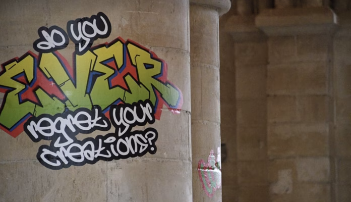Привремените слики во стилот на графити вклучуваат прашања до Бога, како на пример: „Дали сте таму?“ и „Зошто создадовте омраза кога љубовта е толку помоќна?“ Други поставени прашања вклучуваат: „Дали сè има душа?“ и „Дали се каете за вашето создавање?“