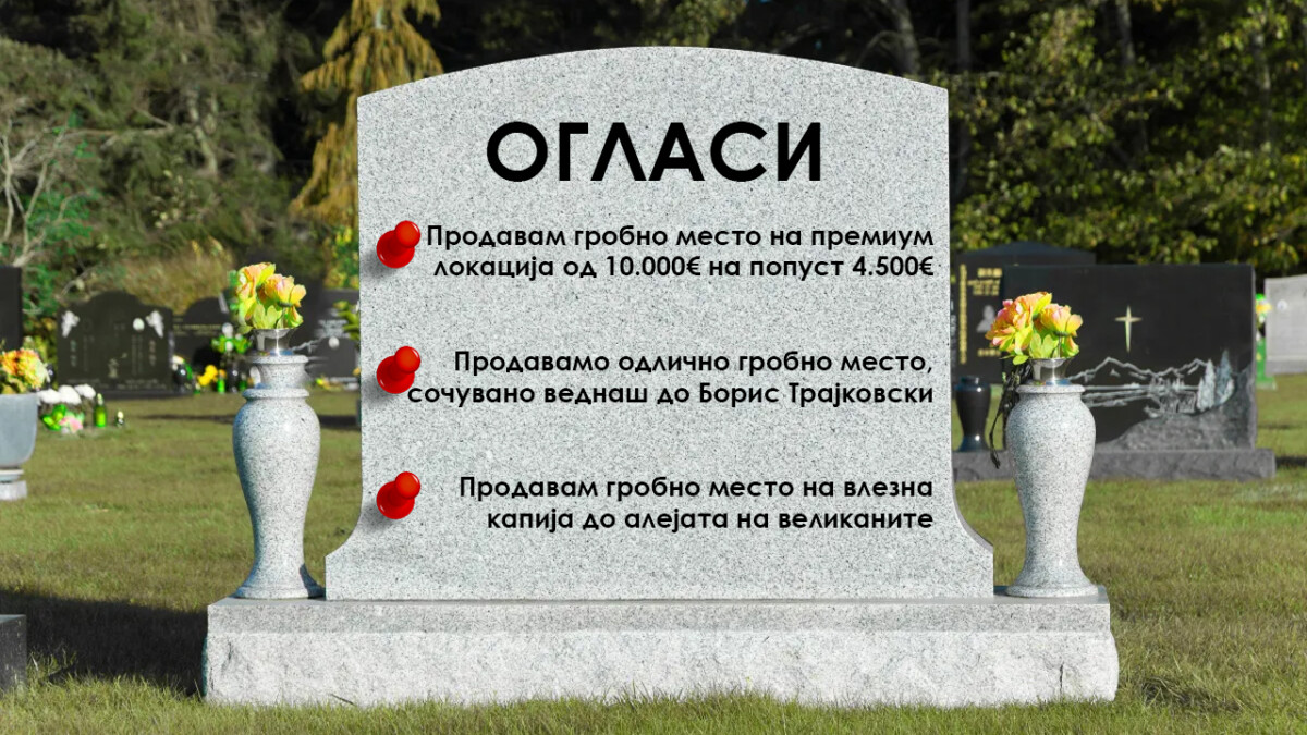 „Продавам гробно место на православните гробишта во Ѓорче Петров, комплет со гранитен надгробен споменик и мермерен тротоар и вазни, на премиум локација – прв ред, веднаш спроти капелата. Цена: 4500 ЕУР“, се само дел од огласите за продавање или изнајмување на гробни места.