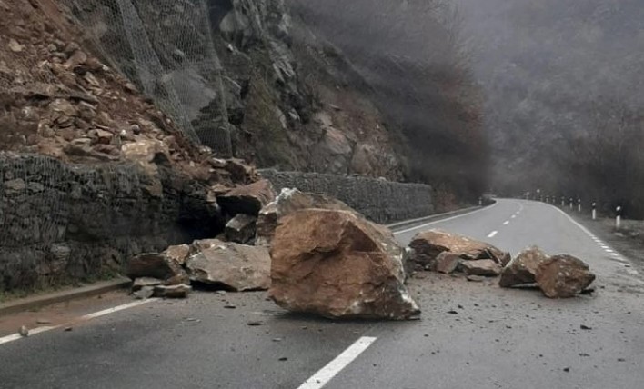 Интензивниот дожд што непрекинато паѓа од синоќа предизвика повеќе одрони на патниот правец Делчево – Македонска Каменица.