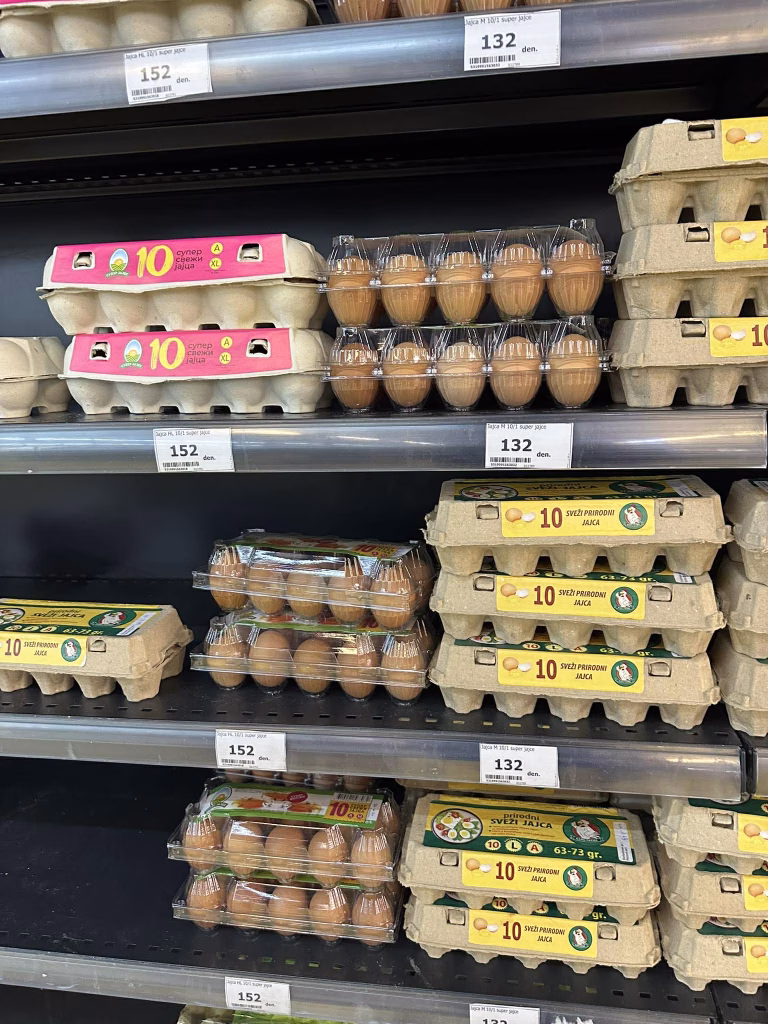 Потрошувачката кошница на македонските граѓани претрпува нов удар. Една од најосновните животни намирници – јајцето, полека но сигурно станува луксуз. Граѓаните реагираат на драстичното поскапување во маркетите, каде цената за само едно јајце во одредени случаи достигнува дури и до 18 денари, а табла со 10 јајца се продава по цени кои до неодамна беа незамисливи.