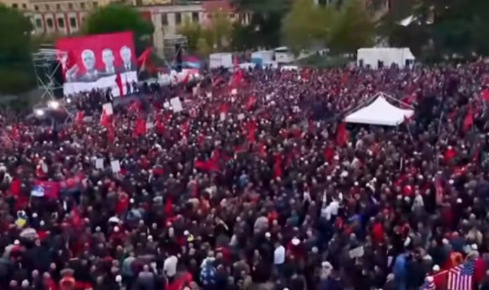 Плоштадот „Скендербег“ во Тирана попладнево одекнуваше од повици за правда за поранешните водачи на Ослободителната војска на Косово, кои се наоѓаат во притвор во Хаг.