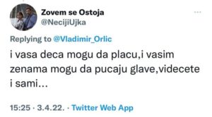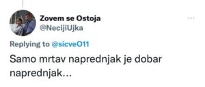 – Само мртов прогресивец е добар прогресивец! – пишуваше во твит испратен до Горан Весиќ.