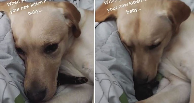 @colleenraney53 Ya’ll this dog loves our new kitten. ❤ Rex follows Casper around everywhere, licks him, cuddles him, and plays with him. I am beginning to think he really thinks this kitten is his baby. 🤣#kitten #dog #animalfriends #pets ♬ original sound – colleenraney53