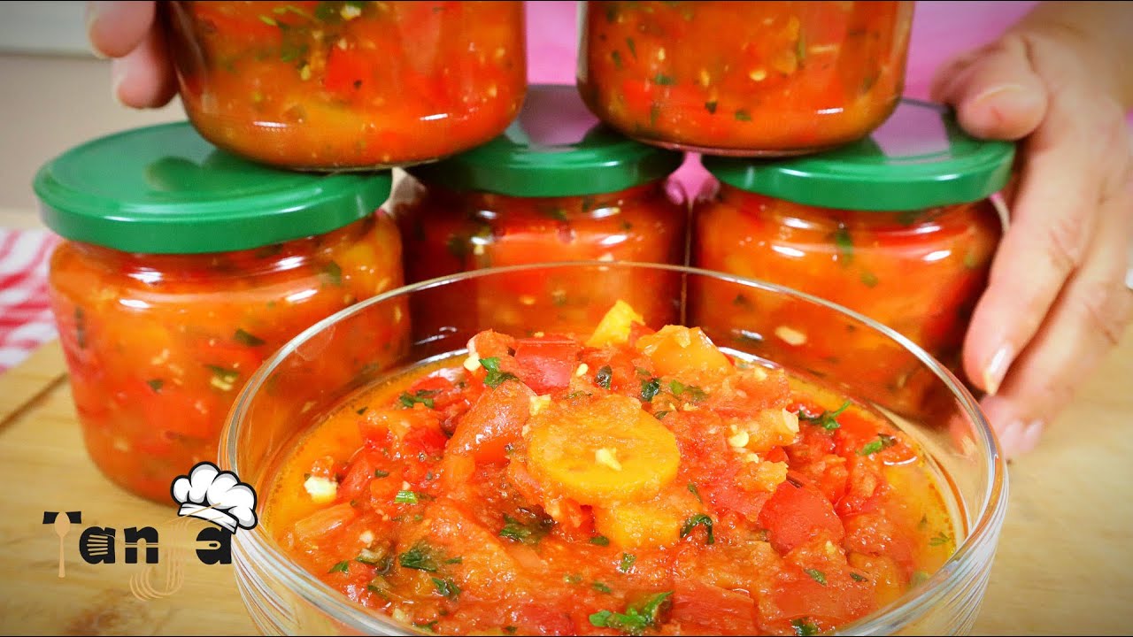 Како зимска салата подгответе варени пиперки, домати и моркови. Уживајте во летниот зеленчук и во зимата. Подготовка за зима, рецепт.