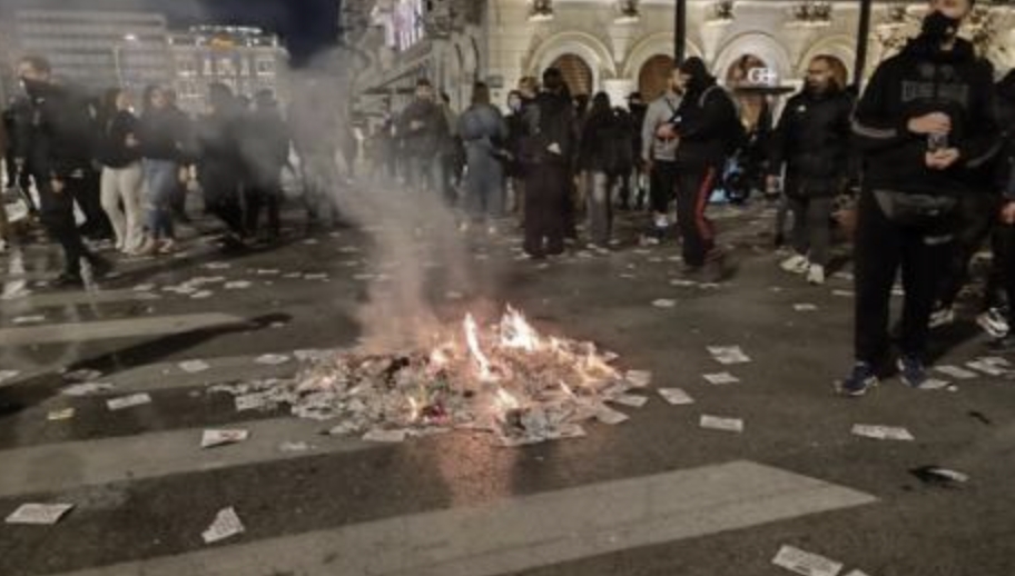 Имено, откако заврши официјалниот дел од протестот за железничката несреќа, група маскирани демонстранти ја нападнаа полицијата со молотови коктели, предмети.