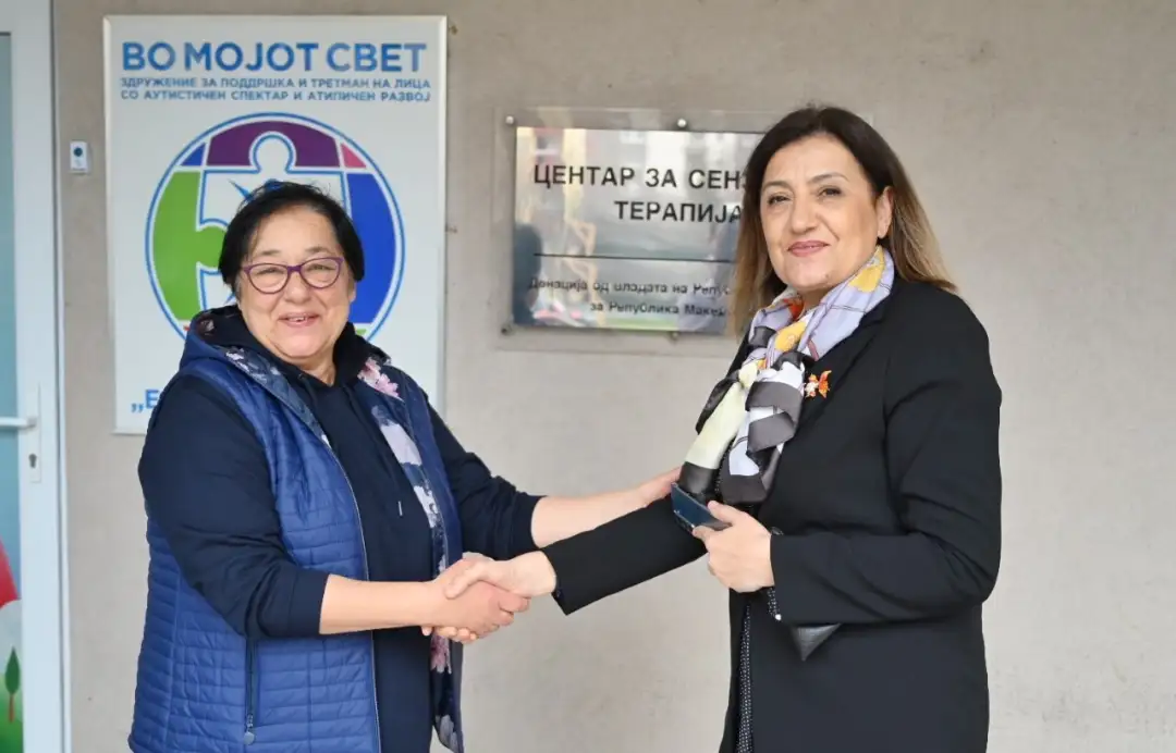 Министерката за труд и социјална политика Јованка Тренчевска денеска беше во посета на Центарот за сензорна терапија „Во мојот свет“ во Скопје со кој што раководи Здружението за поддршка и третман на лица со аутистичен спектар и атипичен развој „ВО МОЈОТ СВЕТ“, информираат од МТСП.