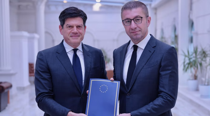 Премиерот Христијан Мицкоски на заедничката прес-конференција со амбасадорот на Европската Унија, Михалис Рокас, се осврна на Годишниот извештај на Европската комисија за напредокот на Северна Македонија во процесот на пристапување кон Европската Унија.