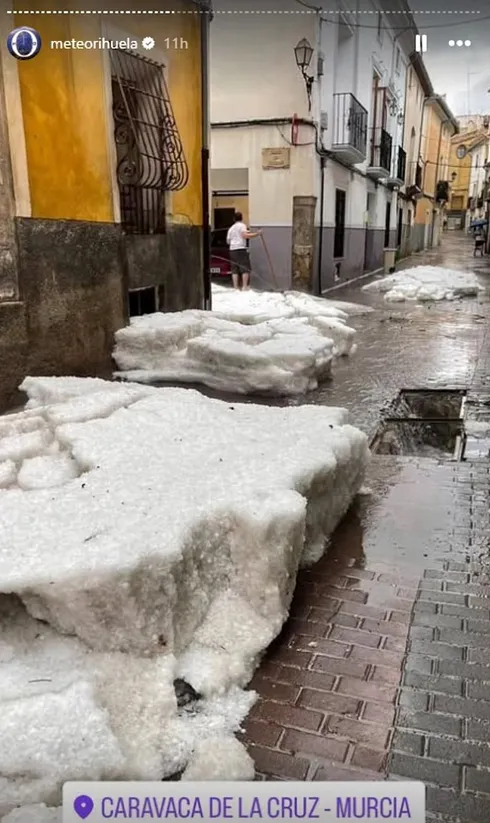 Регионот Мурсија е силно погоден, со топчиња град со големина на топка за голф што паѓаат врз автомобили во градот Каравака де ла Круз, големо место за поклонение.