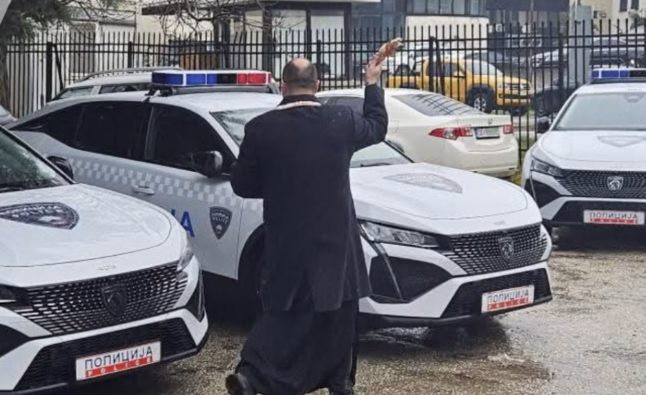 Фотографиите на социјалните мрежи на кои се гледа поп како извршува верски обреди во присуство на полициски службеници, предизвикаа голем број реакции во јавноста.