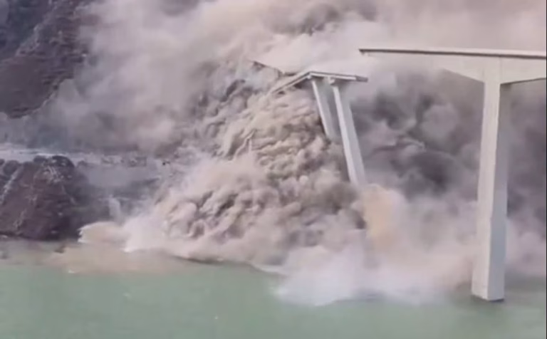 ВИДЕО СЕ СРУШИ НОВ МОСТ ВО КИНА Објавена морничава снимка: Огромен облак од сив чад го прекри регионот