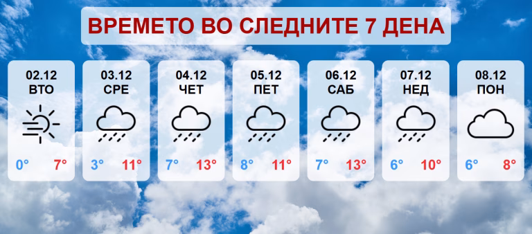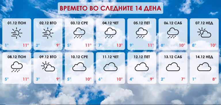 Според моменталната прогноза, во првите две недели од декември нè очекува променливо време со температури типични за овој период од годината. Првите два дена од месецот, понеделник (01.12)…