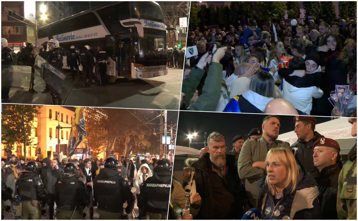 Во близина на петтата белградска гимназија, граѓани го блокирале сообраќајот и извикувале, додека од шаторите повторно се пуштала гласна музика. Присутни биле и силни полициски сили со штитови, но ситуацијата, според последните информации, останала мирна.