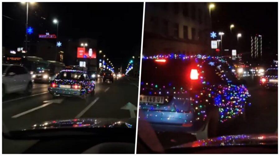 Два автомобили со панчевски регистрации, целосно украсени со шарени новогодишни лампиони, се возеле низ улиците.