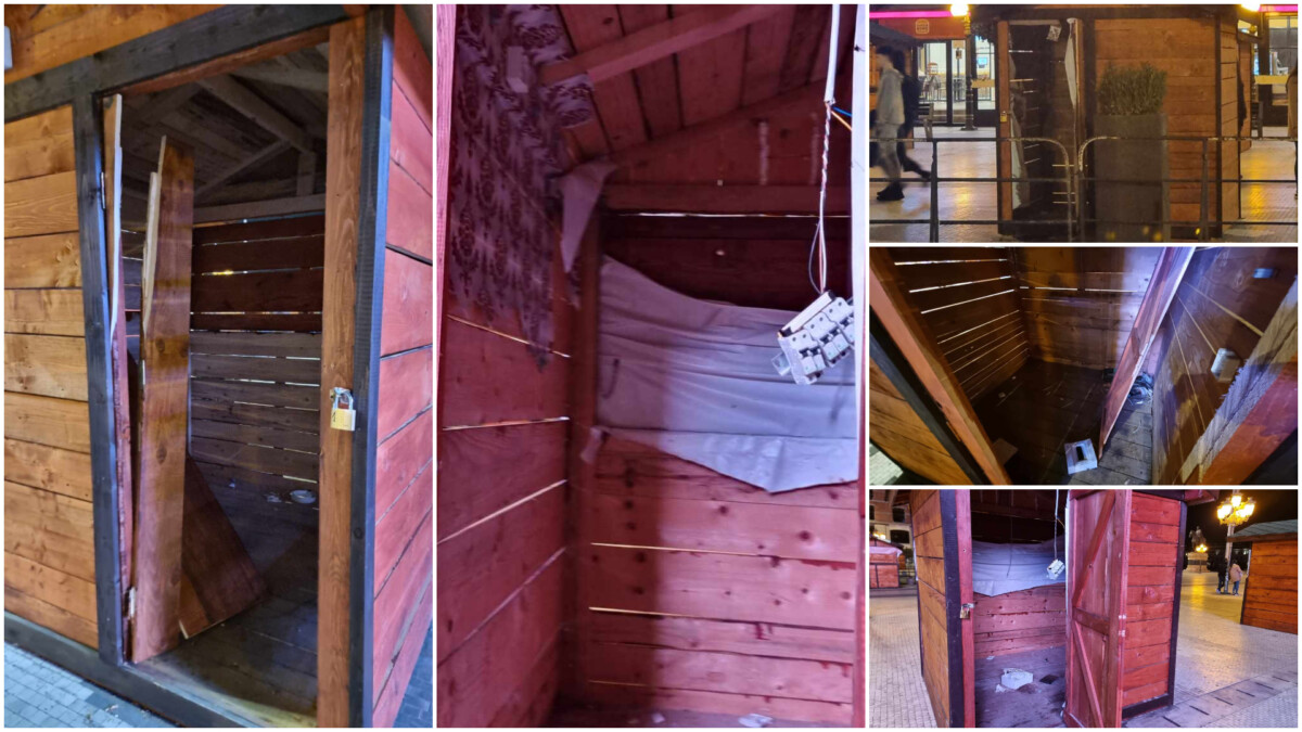 Куќарките кои Град Скопје за Нова година ги постави на Плоштадот Македонија се искршени и затрупани со ѓубре. Иако новогодишната атмосфера одамна помина и веќе сме 27 февруари, тие сè уште стојат на Плоштадот. На никого од Град Скопје не му текнува да ги отстрани па сега тие се мета на несовесни граѓани.