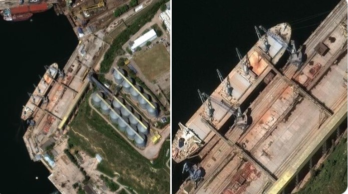 На Твитер се објавени сателитски снимки од Крим на кои се гледа како руски бродови наводно товараат украдено жито од Украина.