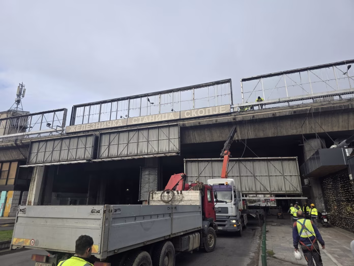 Директорот на МЖ Инфраструктура, Синиша Ивановски на својот Фејсбук профил објави дека се отстранува првиот билборд од Железничката станица Скопје.