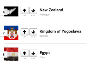 Втората е Црна Гора, третата е Казахстан, четвртата е Турција, а петтото е знамето на Тибет. Седмото место е можеби најголемото изненадување бидејќи на него стоело – знамето на Кралството Југославија, а знамето на Социјалистичка Федеративна Република Југославија се најде на деветтото место, па се чини дека Балканот оваа анкета ја сфати како нешто витално.