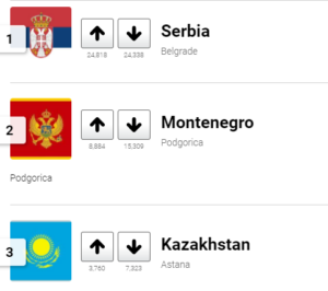 Анкетата, која се појави на порталот пред неколку години, досега собра 1,2 милиони гласови, од кои повеќе од 25.000 отидоа во Србија. Српското знаме доби над 24.000 негативни гласови, но не успеа да го собори.