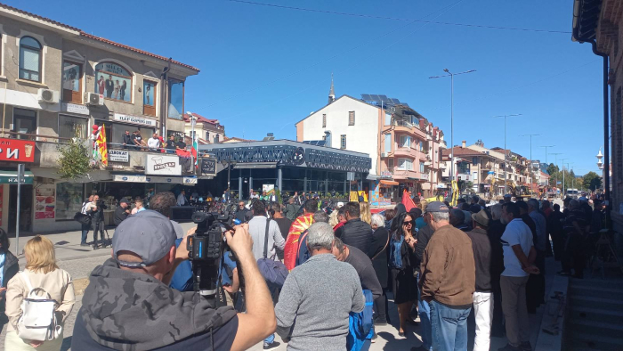 – Во Охрид почна протестот пред бугарскиот културен клуб „Цар Борис Трети“ којшто според најавите треба да биде отворен во 12 часот.