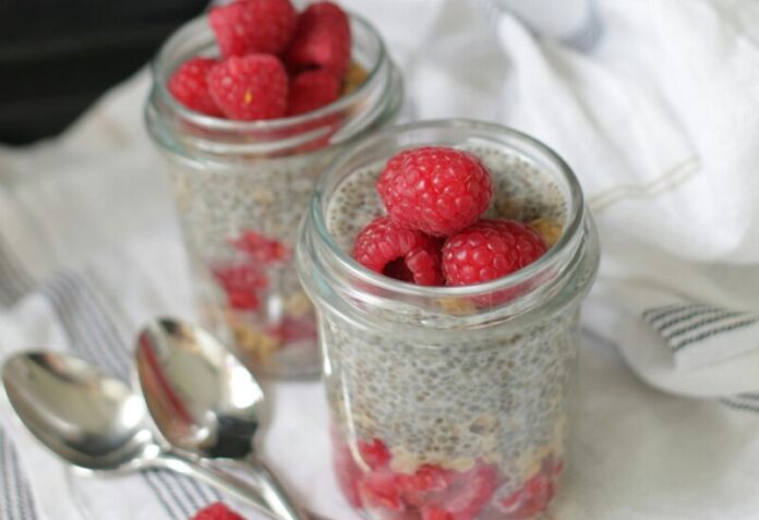 Состојки: 2 лажици чија семе, 1 јогурт, малини.
