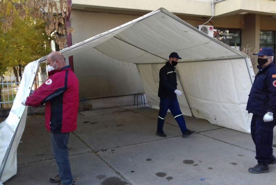 Општинската организација на Црвен крст Струмица, во соработка со Дирекцијата за заштита и спасување, постави два шатори пред Инфективното одделение во струмичката болница за пациенти кои се позитивни или суспектни на коронавирусот.