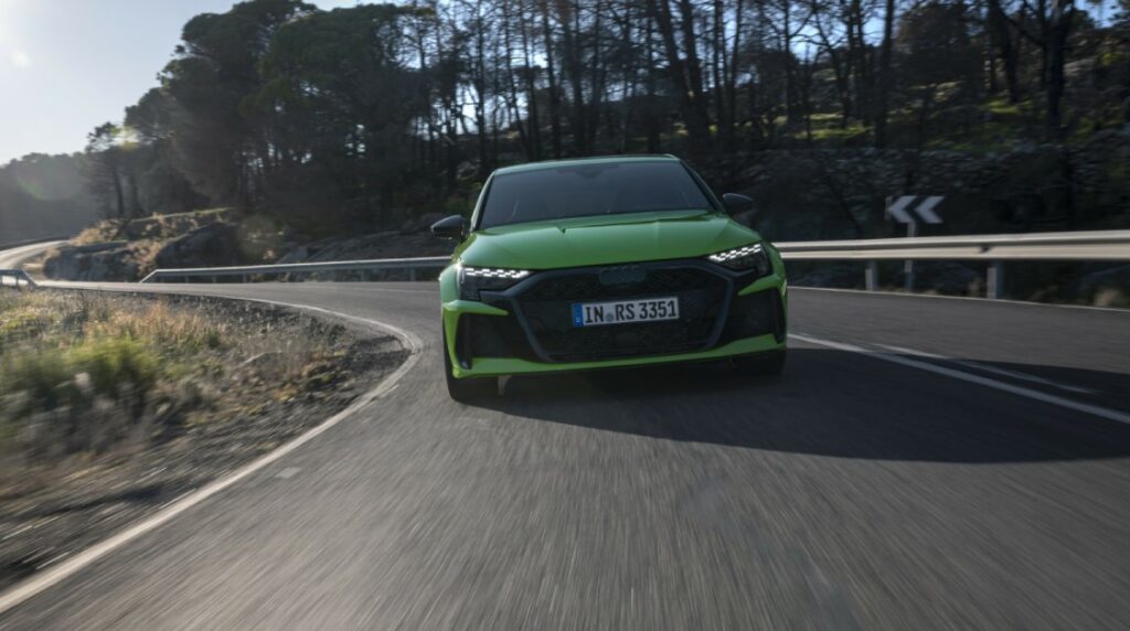 За доказ дека RS 3 е брз на прави патеки, треба само да ја погледнеме неговата статистика за забрзување, која продолжува да ги надминува оние на неговите основни конкуренти. Спротивно на тоа, кривината е тешко да се изрази со бројки. Чувството на возење е многу поважно овде. Толку, всушност, што Френк Стиплер постави нов рекорд во круг на патеката Нирбургринг-Нордшлајф.